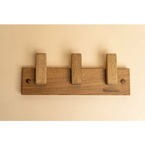 Вешалка деревянная настенная Woodson с тремя крючками из дуба в стиле лофт для бани и дома