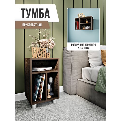 Тумба прикроватная, тумба с полками, тумбочка узкая, тумба маленькая на ножках, открытая тумбочка, Rick Wood, цвет Венге