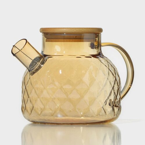 Чайник стеклянный заварочный с бамбуковой крышкой и металлическим фильтром BellaTenero «Круиз», 1 л, цвет золотой