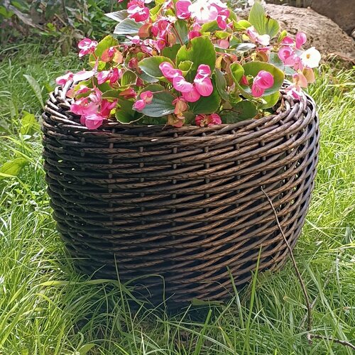 Плетеное кашпо для цветов напольное, цвет темная бронза, объем 12 литров, 34 см х 23 см