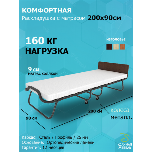 Удачная мебель Двухспальная раскладушка Амалия с матрасом (190x120x39) с изголовьем. Цвет орех