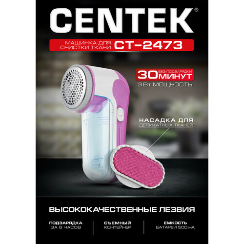Centek Машинка для удаления катышков Centek CT-2473, 3 Вт, от АКБ, бело-розовая