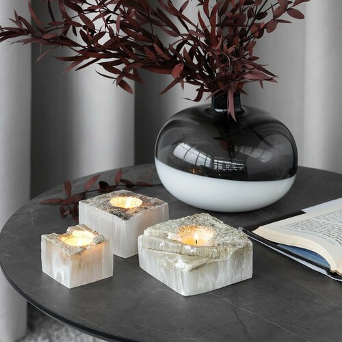 Уильям» – три экземпляра разных размеров. Форма подсвечников напоминает куб, огранка которого подчеркивает сияние хрусталя. Эти аксессуары прекрасно подойдут для элегантного стиля ар-деко с его геометричностью и блеском поверхностей. Несмотря на небольшой размер и видимую хрупкость подсвечников, они достаточно тяжелые и устойчивые.