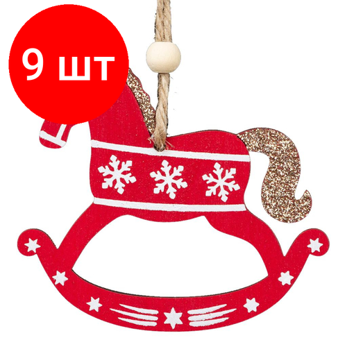 Комплект 9 штук, Украшение Erich Krause Decor Лошадка-качалка 9см, дерево 58771