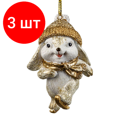 Комплект 3 штук, Украшение Erich Krause Decor Зайка на коньках золотой 7см 58960
