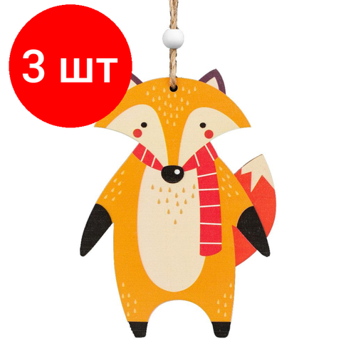 Комплект 3 штук, Украшение Erich Krause Decor Лиса на прогулке 11см, дерево 58796