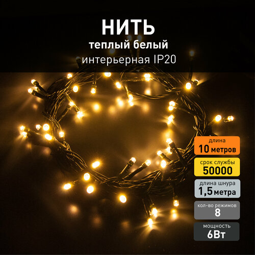 Гирлянда нить Eurosvet 400-002 теплый белый свет, IP20, 10 метров, 8 режимов