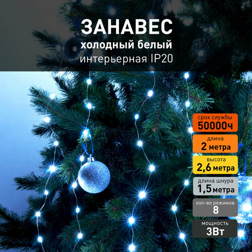 Гирлянда световой занавес Navigator 61 865, 2 х 1.5 м, белый свет, прозрачный провод, IP20