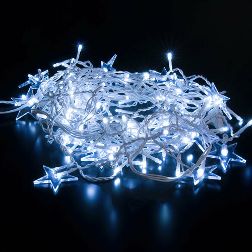 Прозрачная гирлянда-штора "Звёзды" бахрома с теплым белым светом. 138 лампочек, 8 режимов, 2,5м. Артикул ГШ-0003