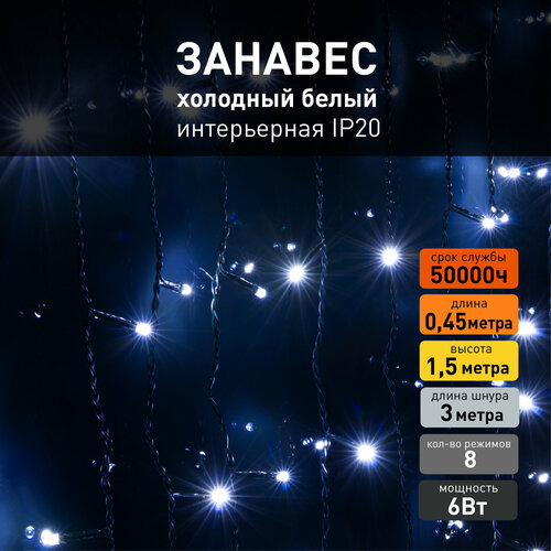Гирлянда светодиодная Штора Занавес 3x2 м, холодный свет, 8 режимов