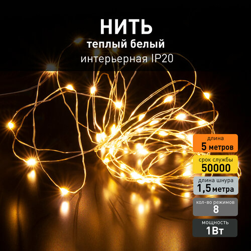 Гирлянда нить Eurosvet Роса 400-007 теплый белый свет, IP20, 5 метров