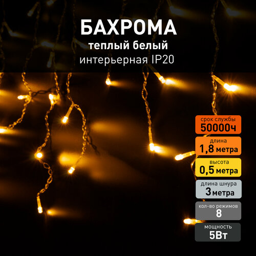 Гирлянда бахрома Eurosvet 100-001 теплый белый свет, IP20, 1,8х0,5м
