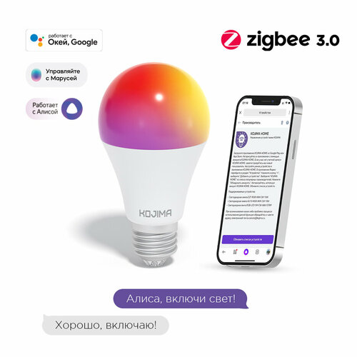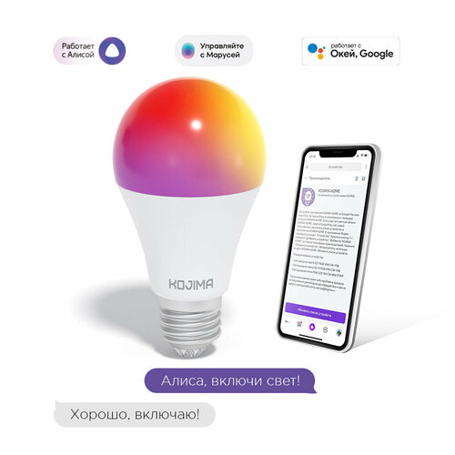 Умная лампочка KOJIMA RGB с Wi-Fi, Яндекс Алисой, Google Home, Марусей, Smart Bulb 10W E27