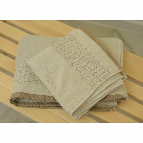 Union Home Набор банных полотенец, 50х90см, 70х140 см, Хлопок, Светло-бежевый, Растительный орнамент, Халима (DJ8)