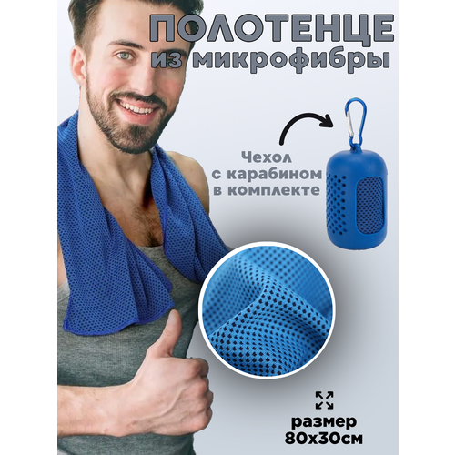 Полотенце спортивное из микрофибры быстросохнущее для фитнеса и бассейна 30*80 см, синее