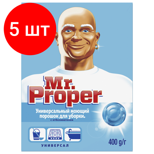 Комплект 5 шт, Чистящее средство 400 г, MR.PROPER (Мистер Пропер), с отбеливающим эффектом, универсал, порошок