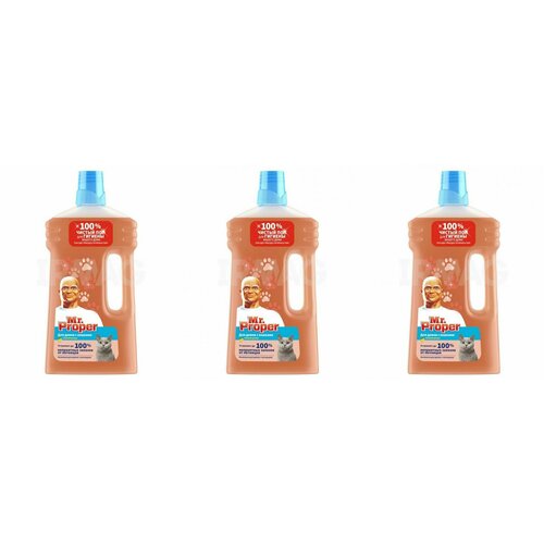 MR PROPER Моющая жидкость для полов и стен для домов с кошками Свежий Цитрус, 1л, 3 штуки