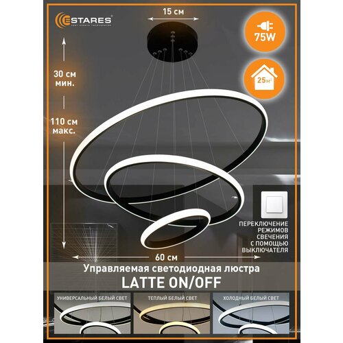Управляемая светодиодная люстра LATTE 75W 3R-ON/OFF -BLACK-Без Пульта