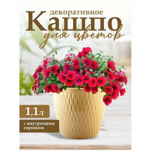 Кашпо elfplast "Kerama" (темно-бежевый) 1,1 л, 13.2х13.2х11.8 см 582