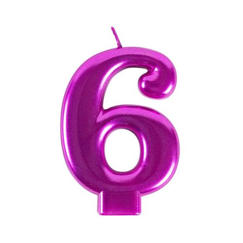 Свеча -цифра "6" Ярко-розовая 8см/G