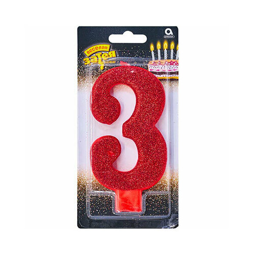 Свеча -цифра "3" Гигант глиттер 13см/A
