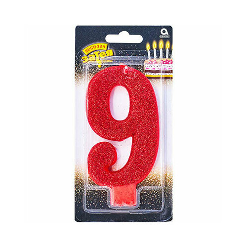 Свеча -цифра "9" Гигант глиттер 13см/A