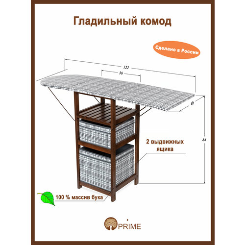 Гладильный комод на 2 ящика PRIME ДхШ: 44х40 см цвет орех/ткань клетка