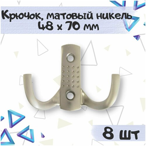 Крючок мебельный 2-х рожковый 48х70 мм, цвет - матовый никель, 8 шт.