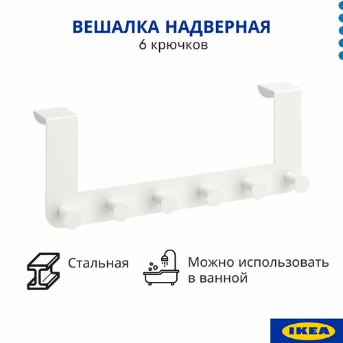 Дверная вешалка икеа энуддэн, белая, металлическая, 6 крючков