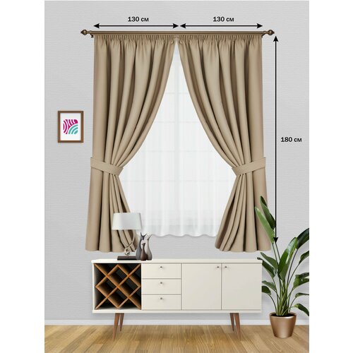 ВсеТканиТут Шторы блэкаут Bacio короткие на кухню / на дачу / для спальни / капучино/бежевый / 260х180 см (2 шт-130x180 см)