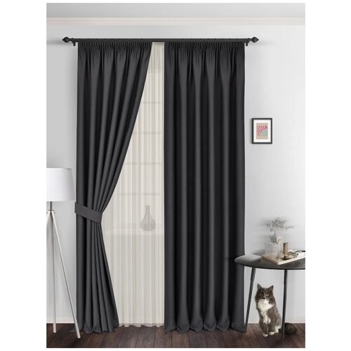 Комплект штор ВсеТканиТут / блэкаут Bacio / темно-серый / графит / с подхватом / 300 х 250 см ( 2 шт - 150 х 250 см )