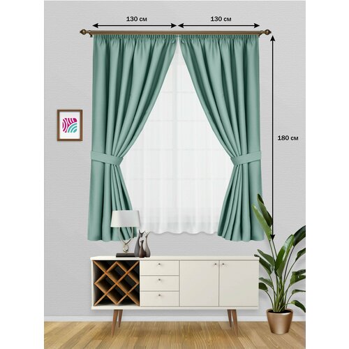 ВсеТканиТут Шторы блэкаут Bacio короткие на кухню / на дачу / для спальни / бирюзовый / мятный / 260х180 см (2 шт-130x180 см)