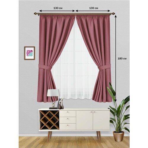 ВсеТканиТут Шторы блэкаут Bacio короткие на кухню / на дачу / для спальни / клюква / 260х180 см (2 шт-130x180 см)