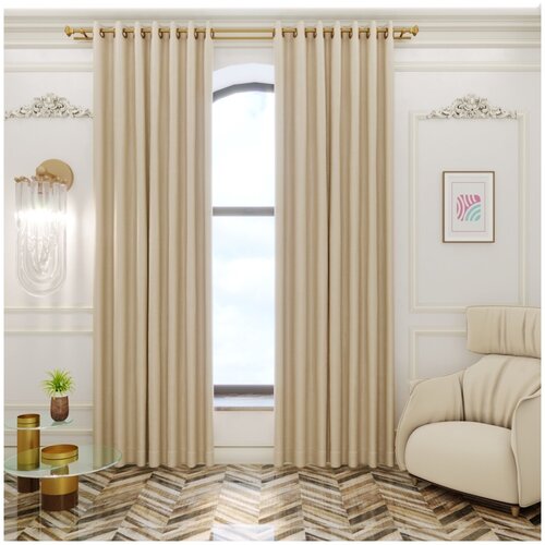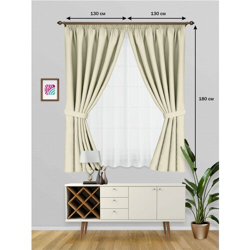ВсеТканиТут Шторы блэкаут Bacio короткие на кухню / на дачу / для спальни / молочный/ 260х180 см (2 шт-130x180 см)