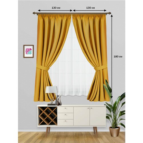 ВсеТканиТут Шторы блэкаут Bacio короткие на кухню / на дачу / для спальни / желтый / 260х180 см (2 шт-130x180 см)