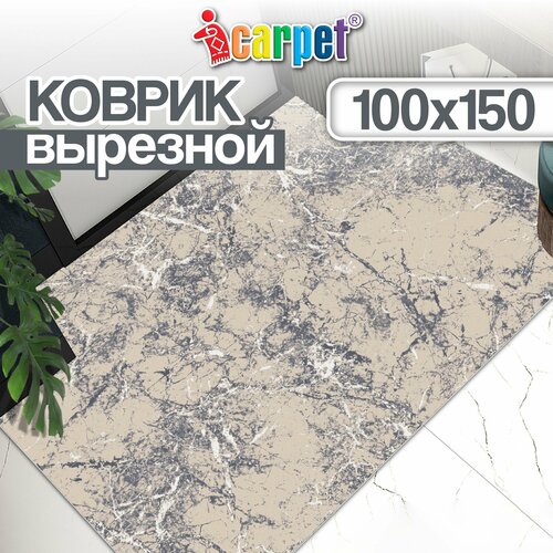 Коврик придверный вырезной Icarpet PRINT коврик прикроватный 100х150 Мрамор серо-бежевый, коврик прикроватный