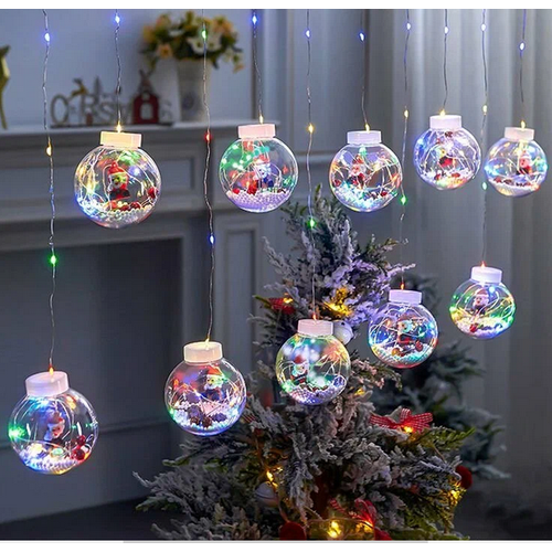 Гирлянда электрическая светодиодная на окно 3x0,6м/дед мороз в шаре (цветной)