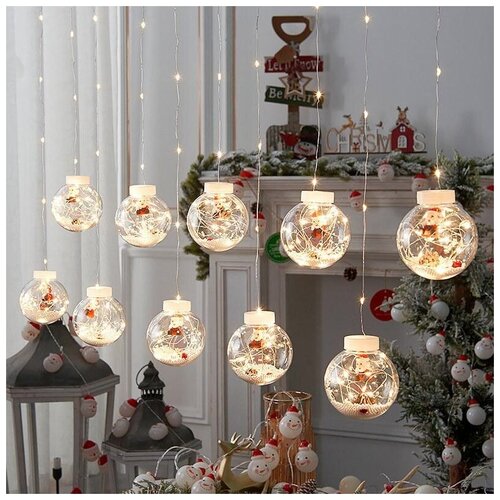 Гирлянда электрическая светодиодная на окно 3x0,6м/дед мороз в шаре