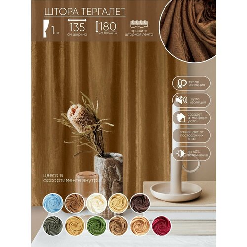 Портьерная штора witerra вельвет однотонный чайная роза 135x260 см 1 шт 106228