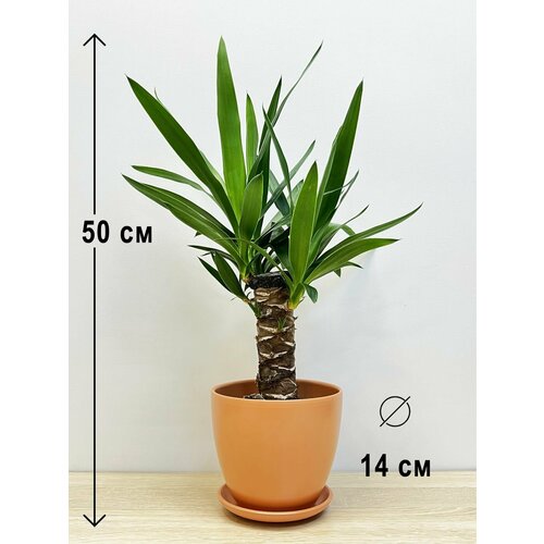 Юкка в керамическом персиковом горшке с поддоном, высота композиции 45-55см