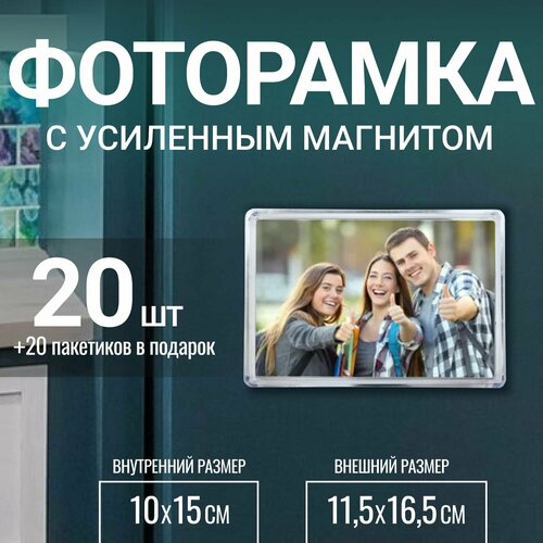Рамка для фото 10х15 , 20 шт. Акриловая фоторамка с магнитом 10х15см