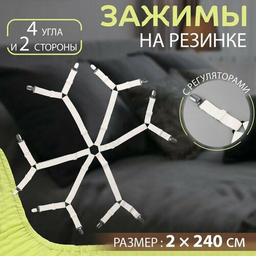 Зажимы на резинке, с регуляторами, на 4 угла, 2 × 240 см белый