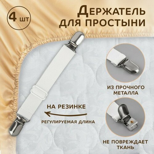 Зажимы на резинке, с регулятором, 2 × 18,5 см, 4 шт, цвет белый