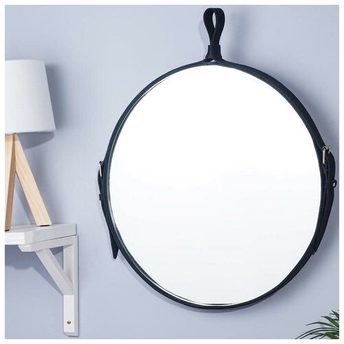 Зеркало "Ритц", d=500, на ремне из натуральной кожи, черный