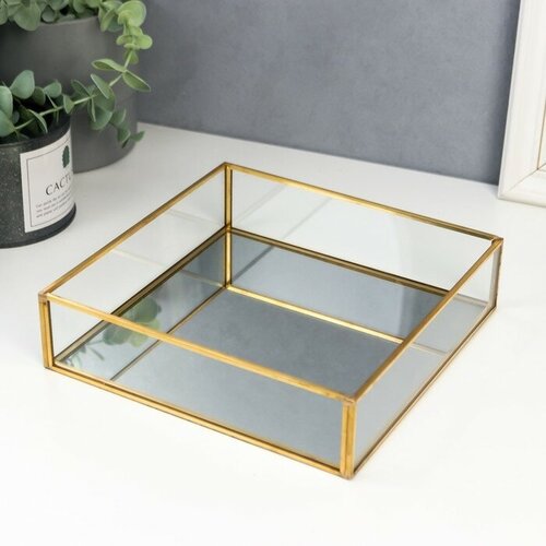 Подставка интерьерная стекло с зеркалом "Квадрат" 5х20х20 см