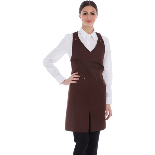 текстильЖенский фартук-перекидка (фартук-сарафан, фартук-туника) TINA состоит из двух полотнищ (переднего и заднего), ширина каждого полотнища- 62 см, высота- 95 см. Фартук выполнен из профессиональной плотной ткани с водо-, масло-, жироотталкивающей отделкой. На карманах и завязках фартука стоят закрепки, благодаря которым изделие имеет особую прочность. Состав ткани: 35% хлопок, 65% п/э. За счет хлопка ткань обладает дышащим эффектом и в нем комфортно работать. Полиэстер в составе ткани не дает фартуку быстро пачкаться, пятна не въедаются в ткань, фартук лучше держит форму и не мнётся. Регулировка по ширине с помощью талиевых завязок. Большой центральный карман. Доступен в различных цветах. Фартук отлично переносит множественные циклы стирок, не деформируясь, не выцветая, не истираясь. Машинная стирка при 40 С. Подойдет для горничных, уборщиц, продавцов, сферы услуг, клининга, салона красоты.