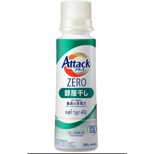 KAO Жидкое средство для стирки "Attack ZERO" (суперконцентрат, с защитой от неприятных запахов при сушке в помещении) 380 г, флакон
