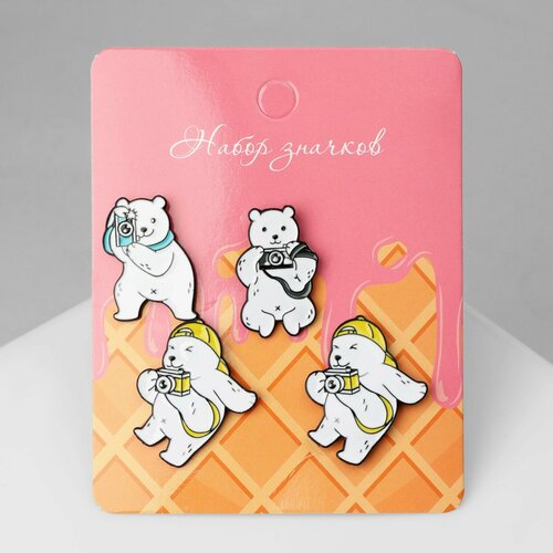 Набор значков (4шт.) "Медведи", цветной в чёрном металле