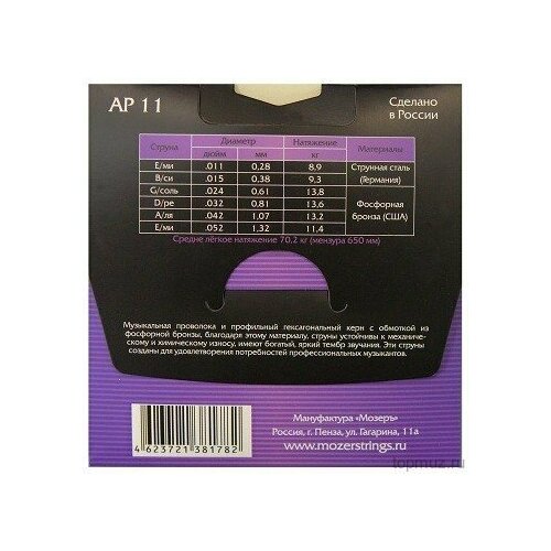 Мозеръ AC-12 Струны для акустической гитары, сталь ФРГ + посеребренная медь (012-054)