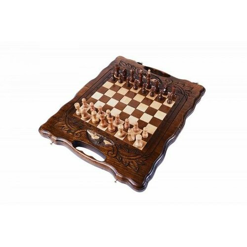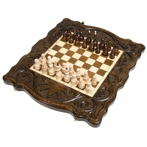 Нарды + шахматы + шашки Haleyan kh118 «Корона» резные, размер 40 x 46 x 3 см, ручная работа, натуральная древесина
